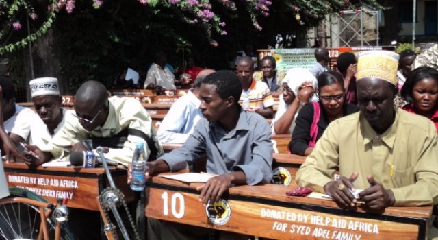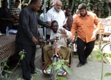 TDCF handed the first batch 200 three sitter desks to 5 village primary schools of Mwanza city. During this ceremony, 5 tricycles were handed over to 5 disabled people in order to help them in their mobility. TDCF also donated 108 PAIRS OF UV PROTECTION SUNGLASSES were handed over to Mitindo Primary school that caters for Albino children. These were donated by MEDE WELL ORGANISATION OF DAR ES SALAAM. Each school headmaster was handed over with 40 very good quality desks, a water cane and 120 trees/plants that are supposed to be planted around the school area in order to compensate for the wood that was used to make the desks.